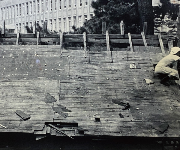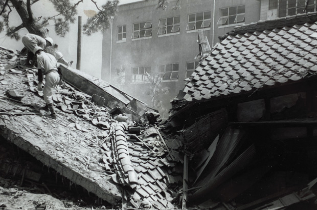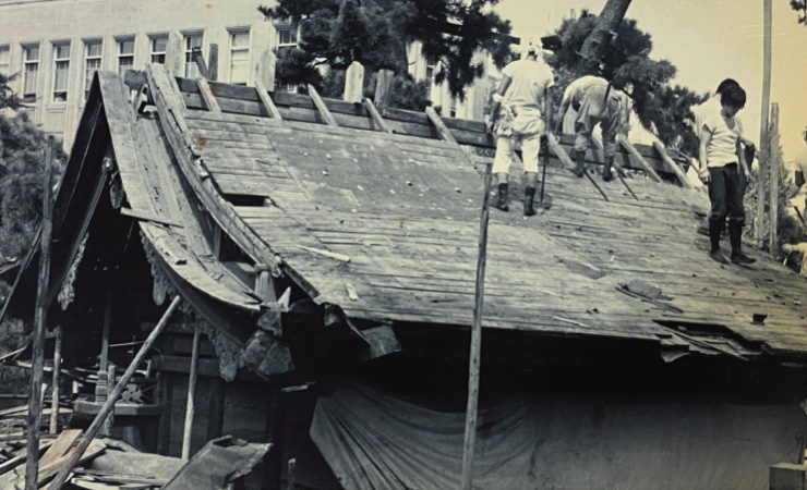 令和8年に新潟地震から62年を迎えます。新潟地震により、大きな被害を受け、陥没・傾斜した幣殿は取り壊し、本殿・拝殿は安全を確保するために急遽改築することとなり、現在に至ります。