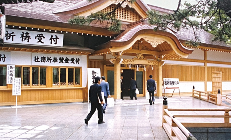 令和8年3月15日から拝殿屋根張り替え工事がスタートします。ご参拝のみなさまにご不便をおかけいたしますが、何卒よろしくお願い申し上げます。なお、67年ぶり本殿屋根張り替えの大工事を含む令和の御造営事業にあたり、信仰の篤い皆様方より広くご奉賛を賜りたく、引き続きよろしくお願い申し上げます。