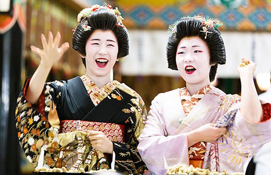 花街では芸妓さん・舞妓さんが豆をまきます。