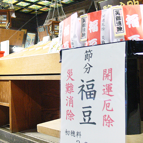 福くじも豆と一緒にまかれ、運がよければ縁起物が戴けます。また、1月上旬より福豆の授与も始まります。